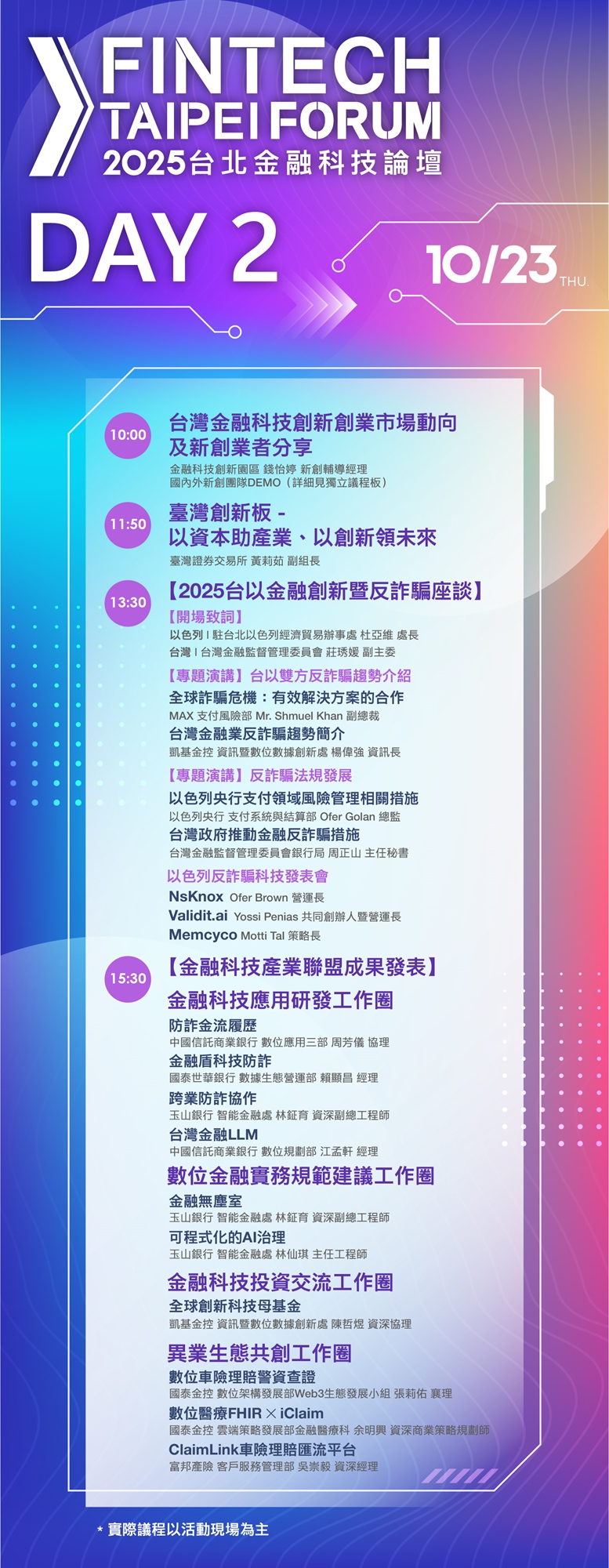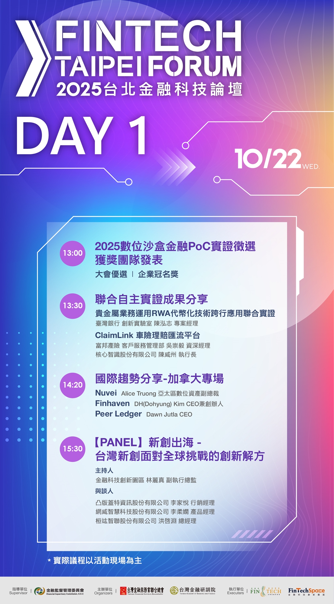 【台北金融科技論壇-FinTechSpace Day 1】2025 年 10 月 22 日 (三) 13:00至 16:30;
