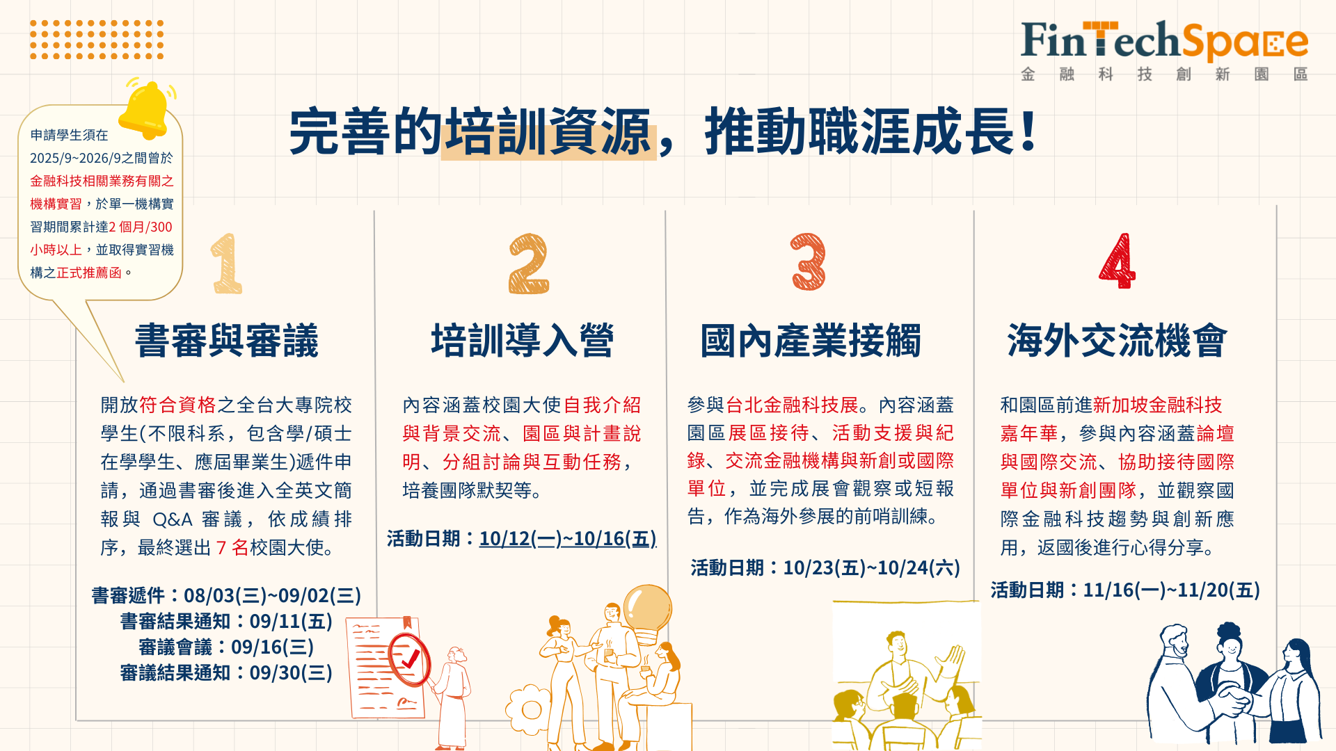 | 活動參與 | 校園大使相見歡 | 2026/10/12(一)~10/16(五)擇一日 |