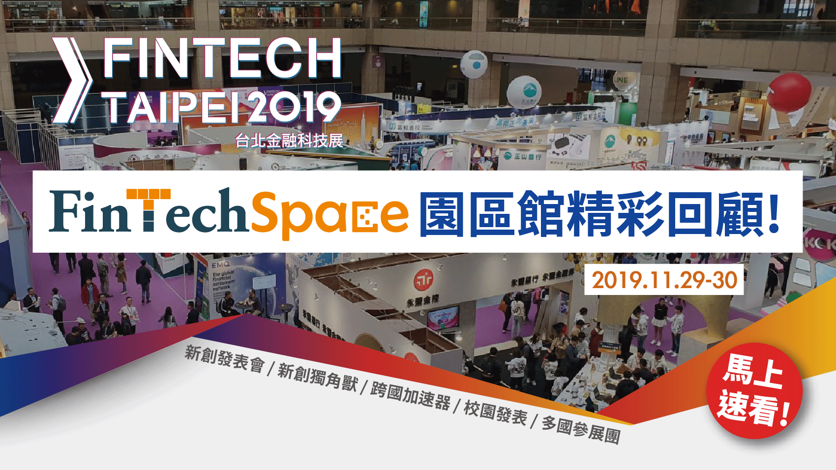 由金管會指導、金融總會籌辦委託資策會負責維運的金融科技創新園區FinTechSpace,11月29日在台北金融科技展展現園區階段成果,邀集美、英、澳、波蘭、荷蘭、新加坡等6國設置國家館,港、馬、日3國加速器及金融科技協會、匯集13國共計180家國內外新創業者參展,同時在兩座新創舞台舉辦超過200場國內外新創發表會及國際加速器趨勢交流對談等活動,並邀請英、美5家獨角獸:Revolut、Rapyd、FNZ、Automation Anywhere及Kiva來台參展,展現國際及國內豐沛的新創能量!