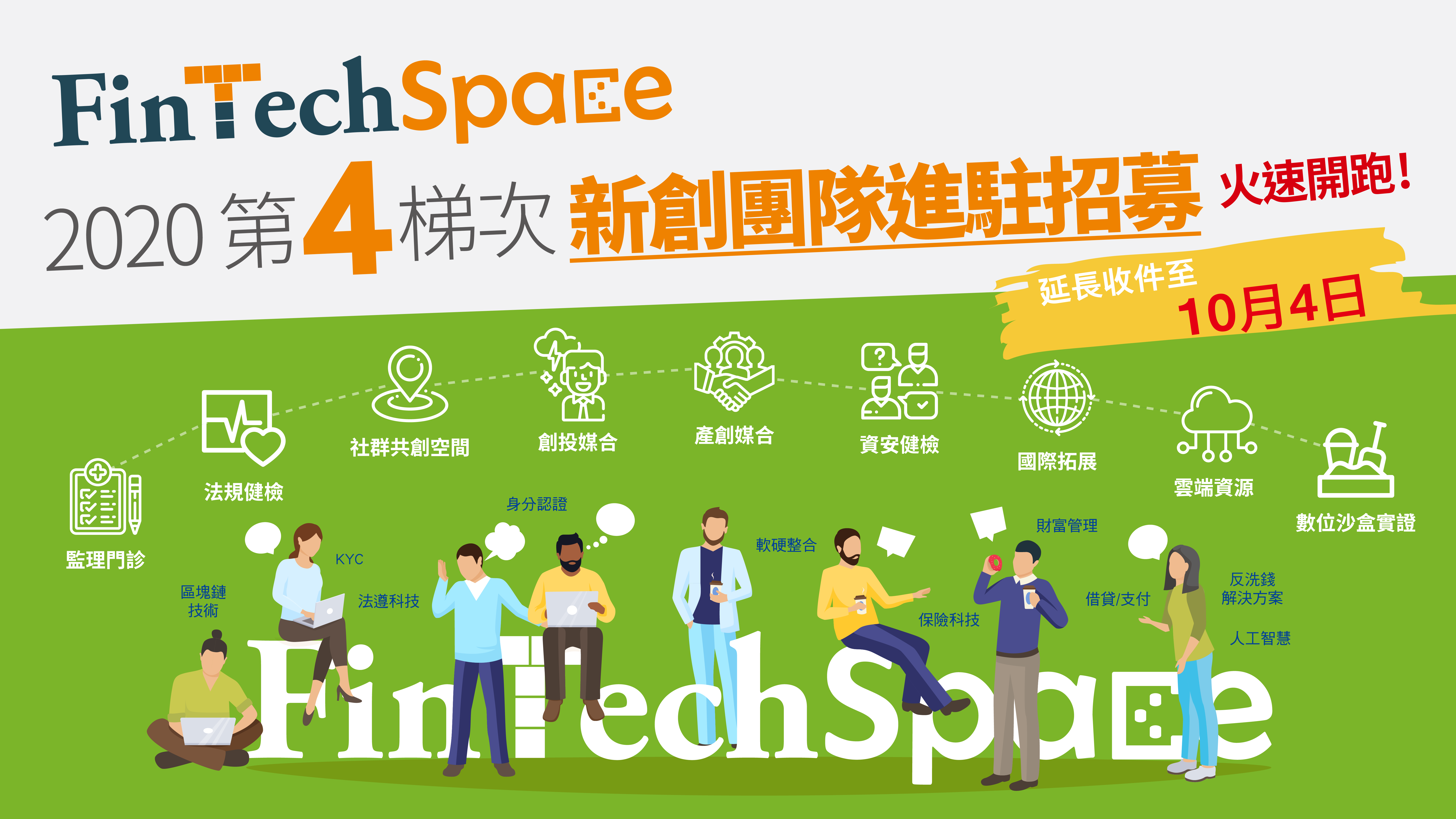 面對複雜的金融法規是否感到困難重重?在創業路上是否想要獲得更多資源呢?您絕對要參加2020年「金融科技創新園區FinTechSpace」第四梯次進駐團隊招募!FinTechSpace將提供您創新到市場最後一哩路的關鍵輔導,受理第四梯進駐申請延長招募至10月4日(日)止,熱烈招募中,趕緊手刀報名喔!